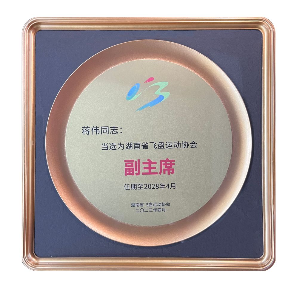 △公司总经理蒋伟当选湖南省飞盘运动协会副主席